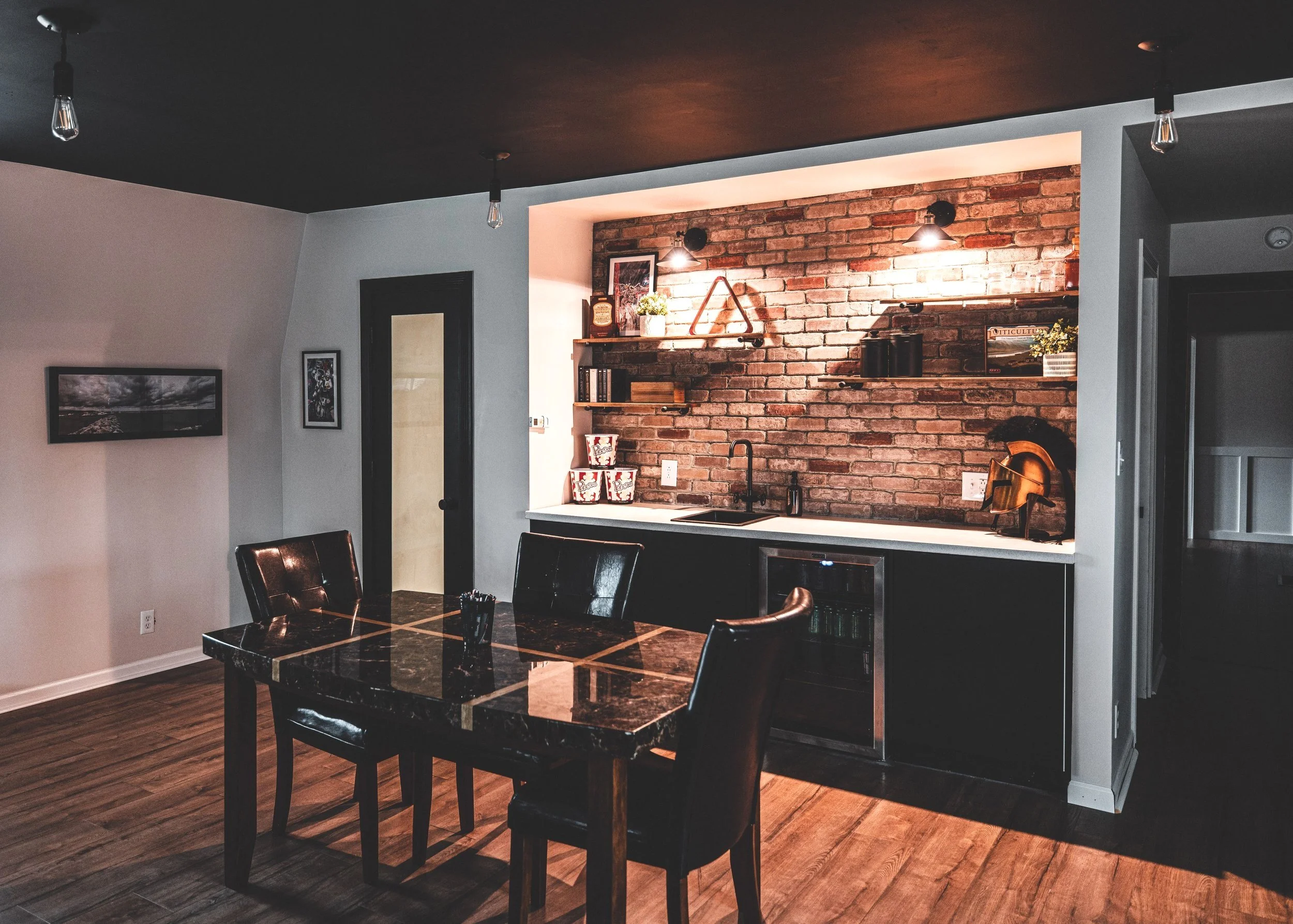 And while there are still little changes I’d like to make throughout the room (heck, since this picture was taken, we’ve already fixed the ceiling and swapped out the table!), it’s safe to say it’s mostly complete - especially the kitchenette!
