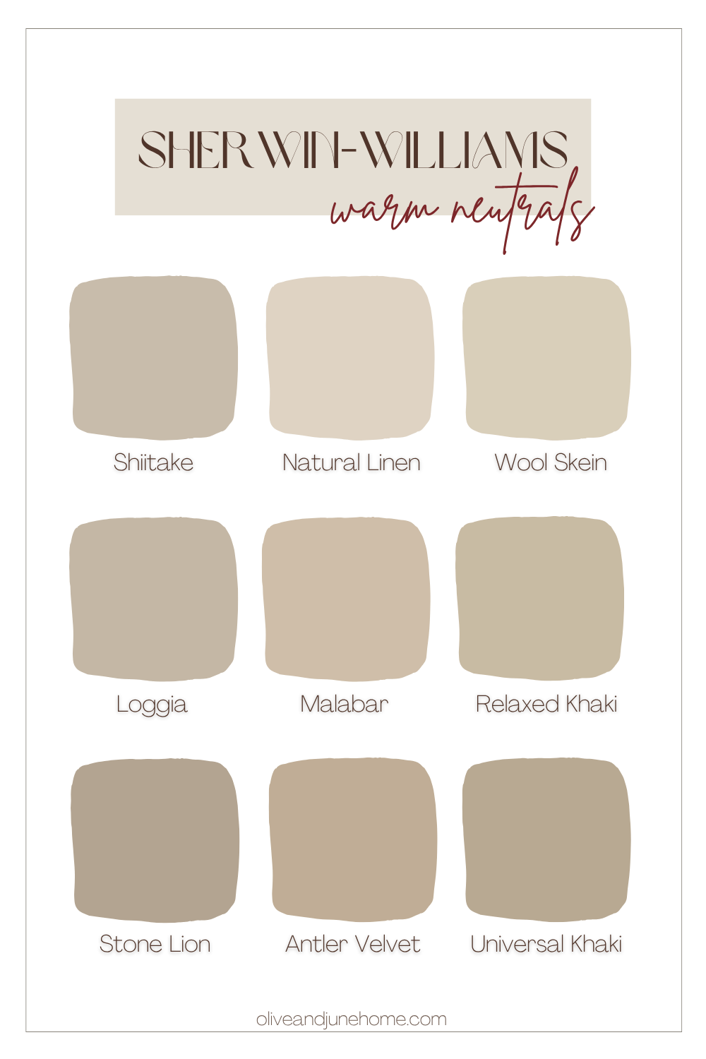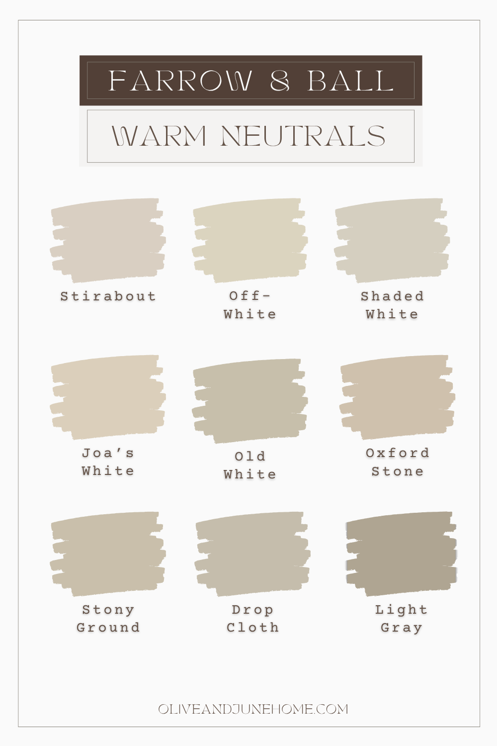 Below are a few colors I recommend to get you started. And no, you won't find any stark whites on this list. Bright white is the absence of color, which is the opposite of what we’re going for here. We're talking inviting, layered, vibey neutrals.